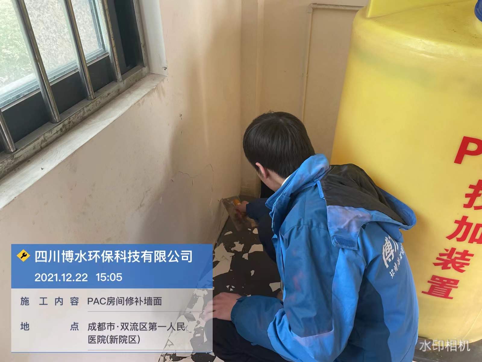 成都雙流第一人民醫院污水站維保-修補PAC房間墻面-排放泵并清洗