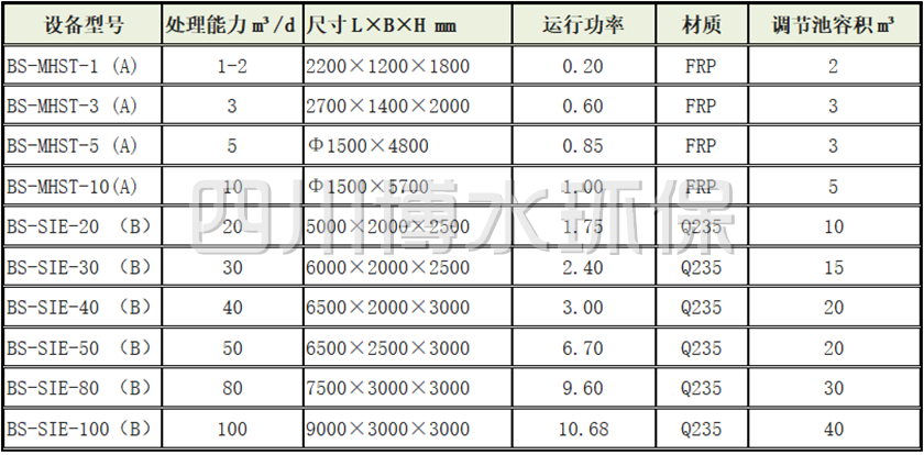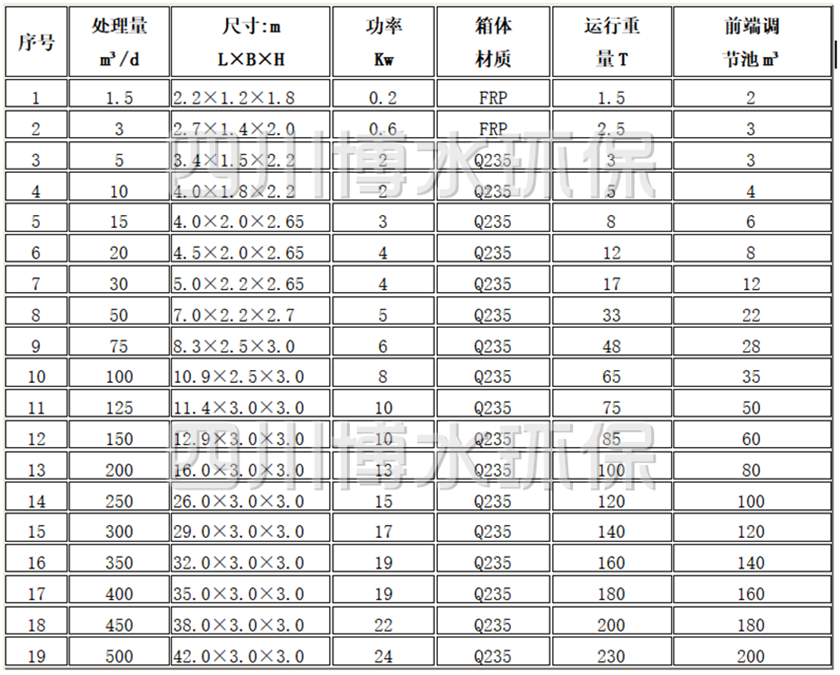 2 MBR工藝設備選型表1.5-500m³/d