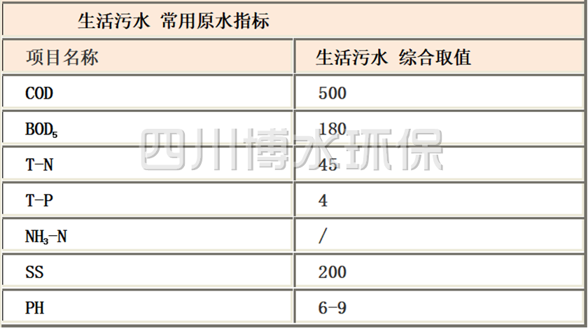1 生活污水常用原水指標取值